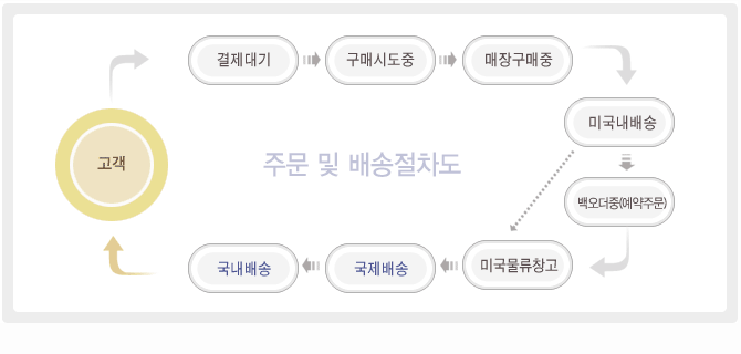 벤더주문(미국 사이트내 온라인 주문을 접수함)이 접수 된 후 [미국내 배송기간] 은 3~7일 정도 소요되며,